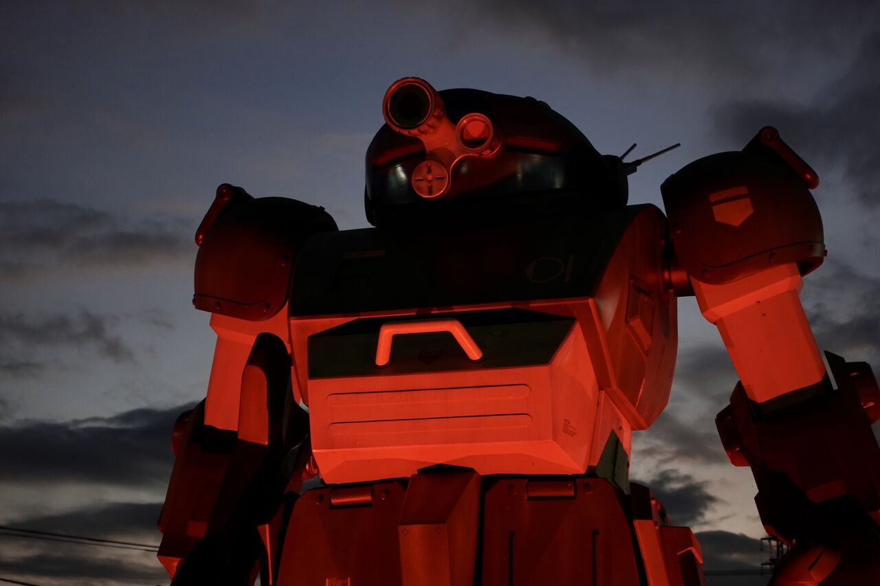 【ボトムズ】JR稲城長沼駅前のスコープドッグ像が期間限定で真っ赤にライトアップ!