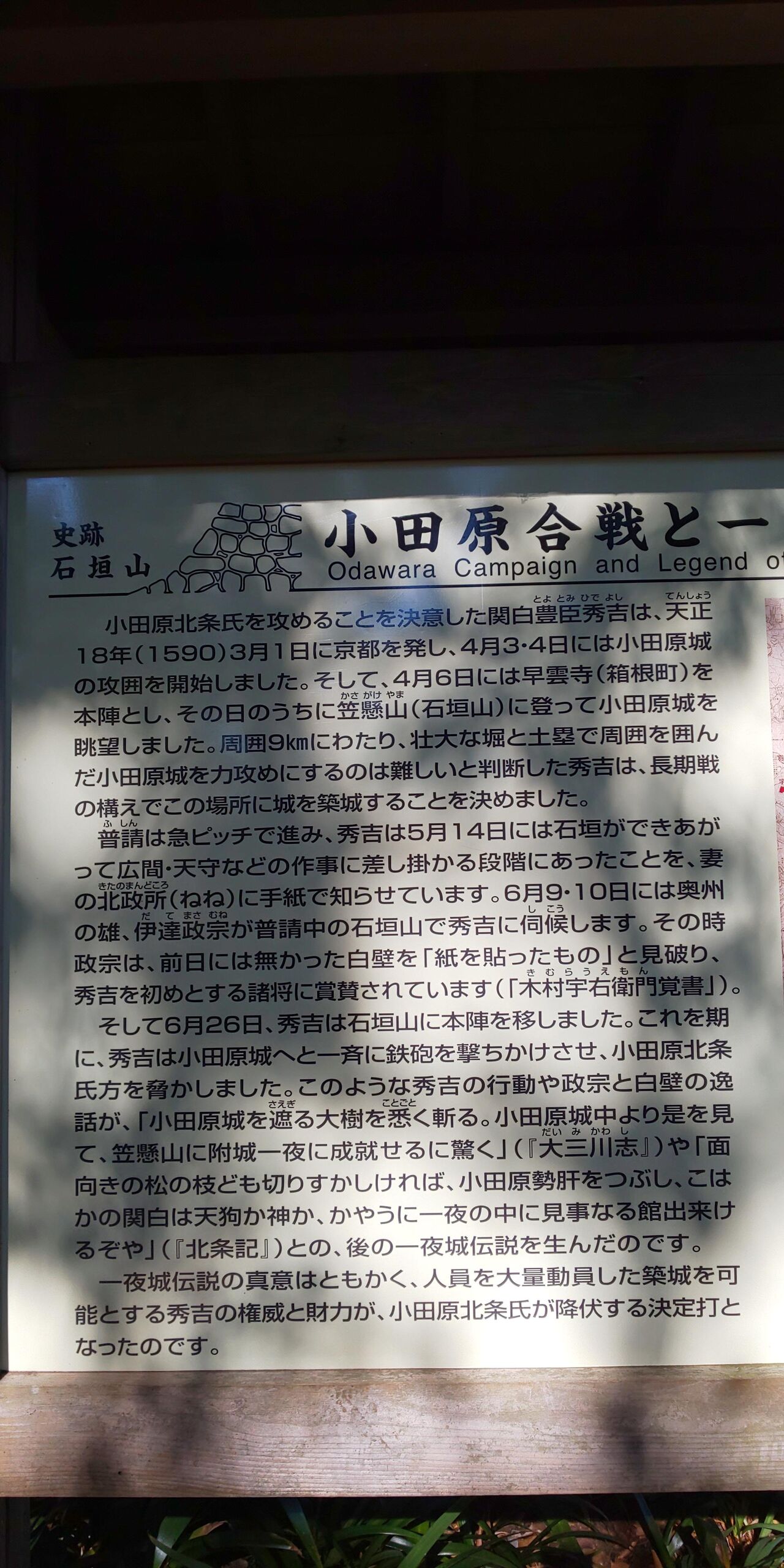 小田原城は以前からお城の番組などをみて、行きたかったのです!もう最高でしたね。小田原城と惣構の土塁跡を直接触れられたのは感動。