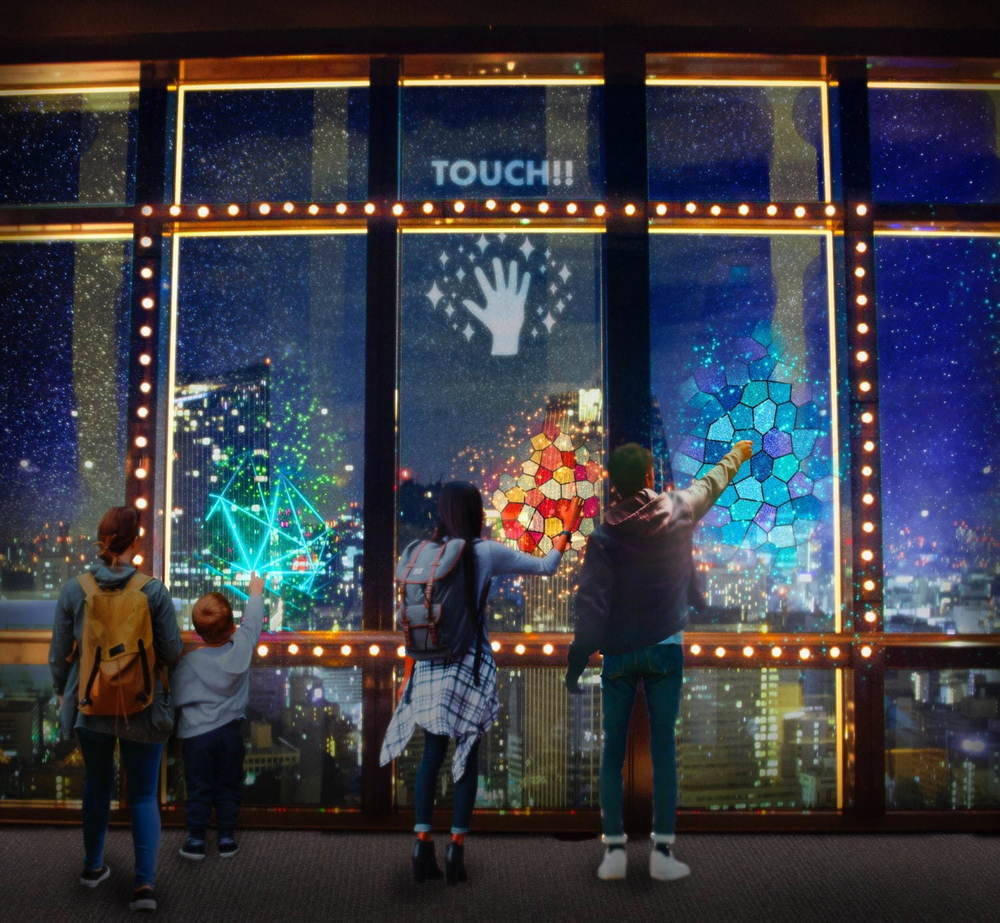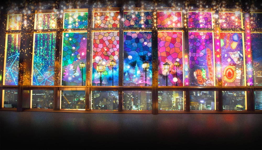 メインデッキの窓面に優美かつ壮大に投映されるアニメーションは、室内に居ながらにして日本的な四季を感じさせます🗼🌸✨