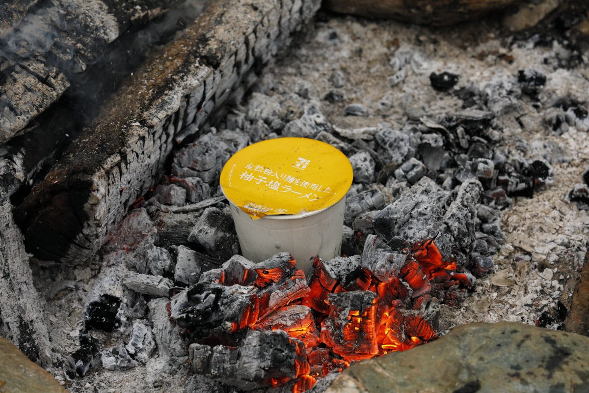 カップラーメンに水を入れて焚き火に突っ込むと5分でラーメンができる。ただし紙のカップのみ。プラのカップだとダメ。旅館で出てくる紙鍋と同じ理屈で水は100℃以上にならないので接している紙は燃えないから。水と焚き火とカップラーメンはあるけど鍋ヤカンがないという時に試してみて。 pic.twitter.com/twvXfe6mTr